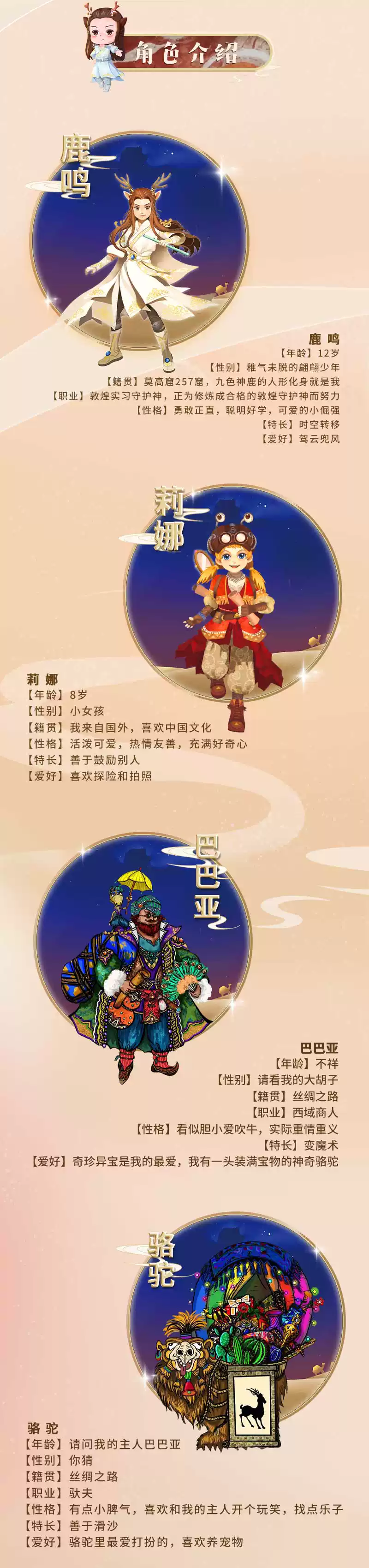 莉娜總是聽爺爺講起,東方有個叫敦煌的地方。一個星云變幻的夜晚,正準(zhǔn)備睡覺的莉娜突然被一股神秘力量帶到了敦煌戈壁。