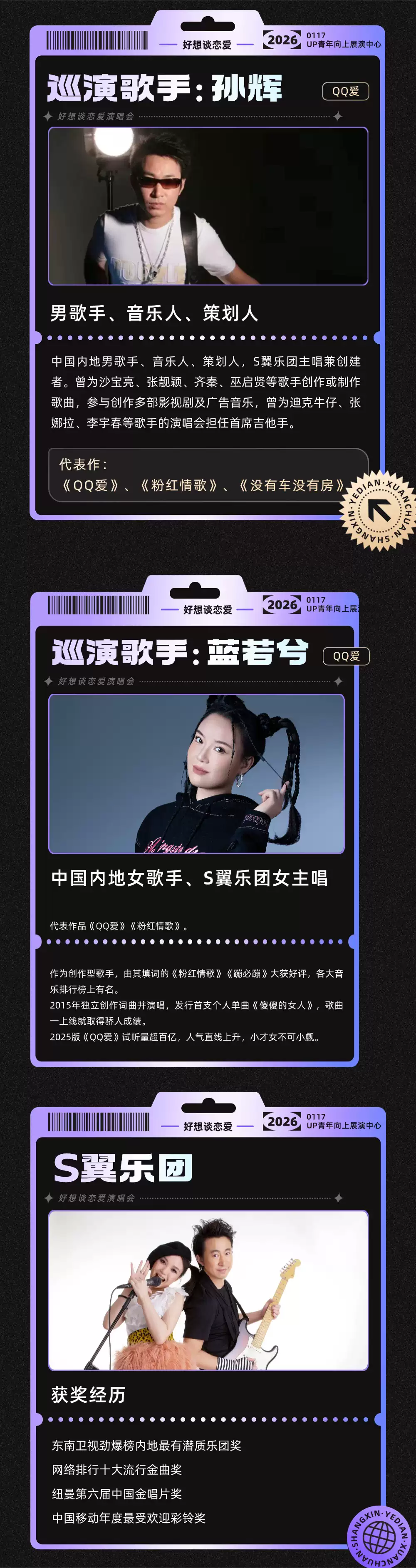 2026年1月17日,杭州青年向上展演中心,一場純享級樂隊(duì)Live與全明星真嗓演繹的演唱會來啦!